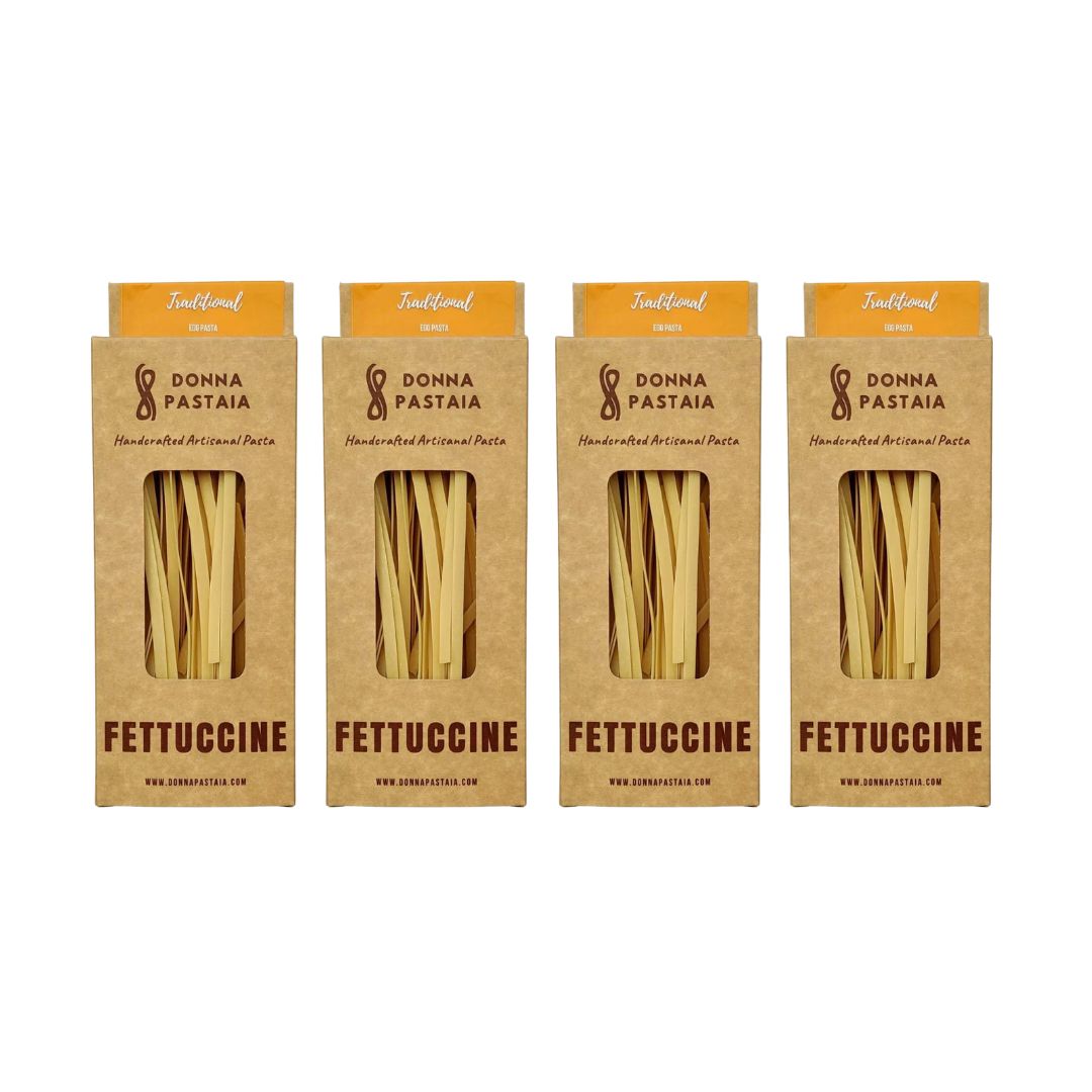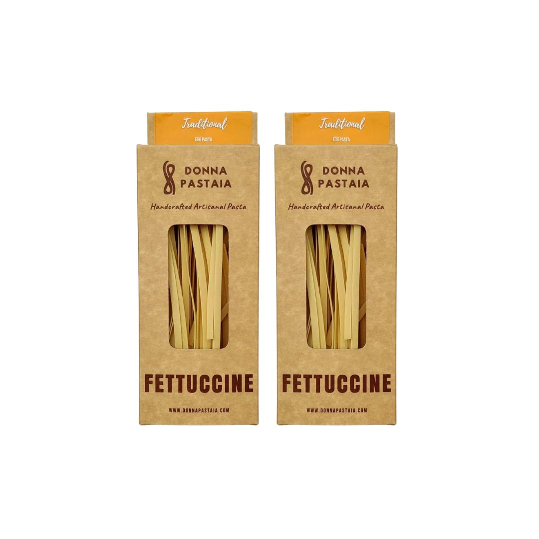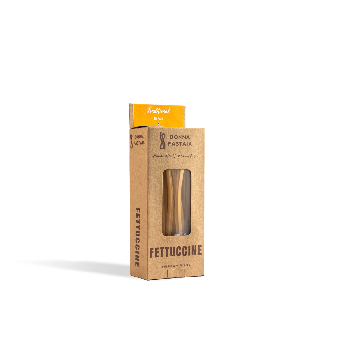 These handcrafted pasta ribbons of fettuccine are about 1/4th of an inch wide and pair perfectly with any sauce of your choice. These are typically added to creamy, cheesy sauces as that wide pasta makes a perfect canvas for the sauce to stick onto.