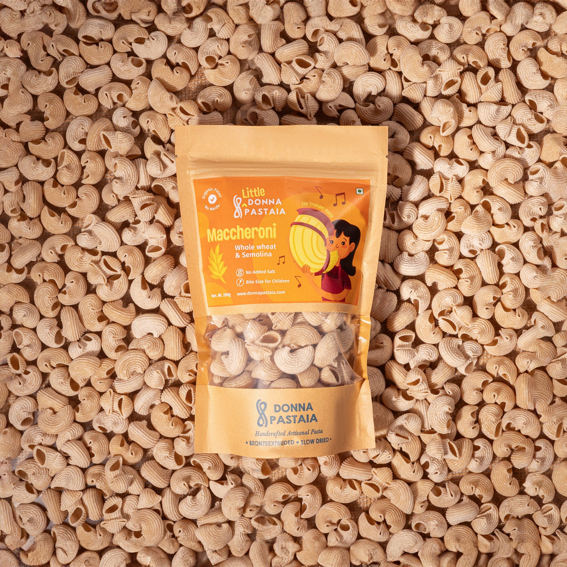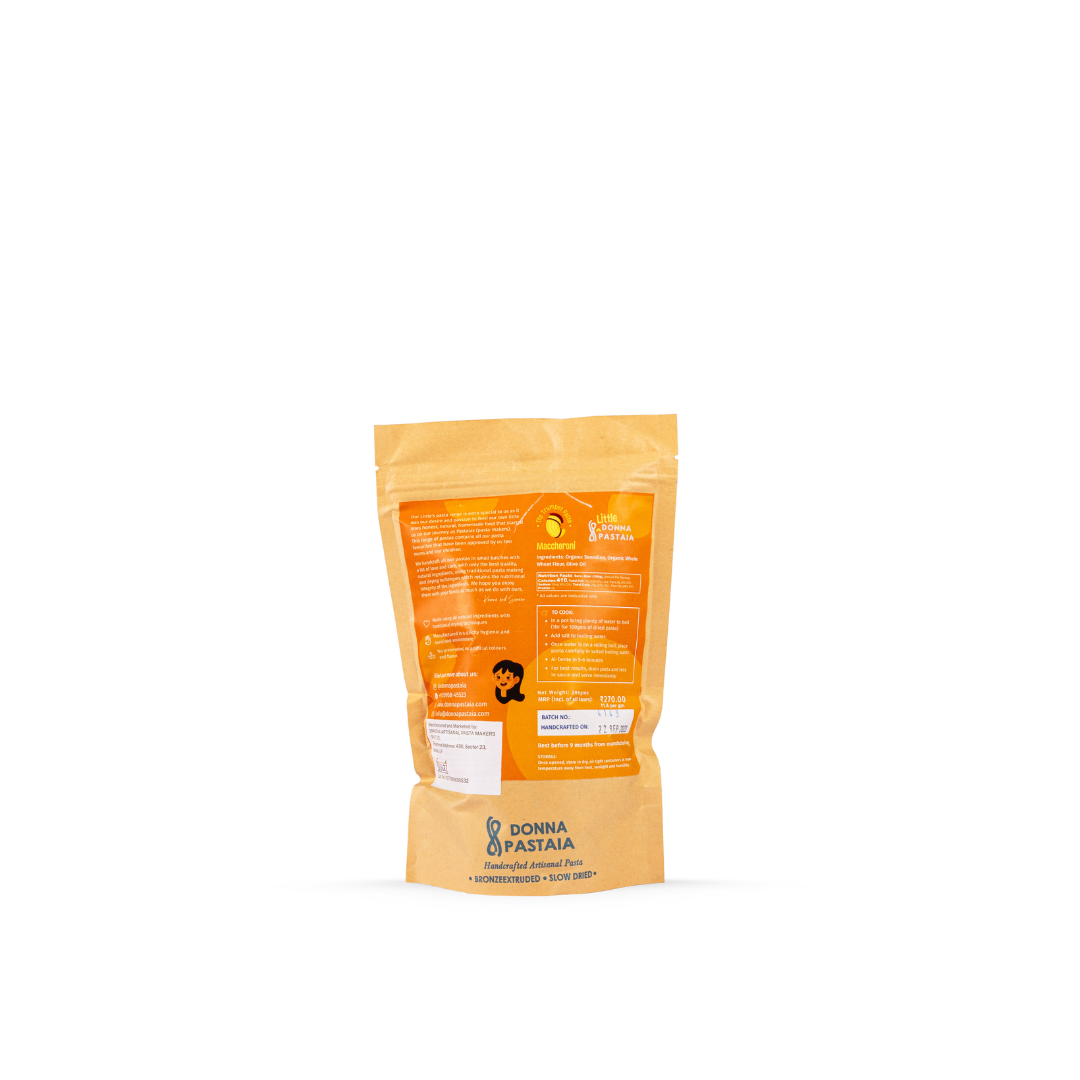 Our little's range is specially crafted for our little pasta patrons! Made with organic flours and extruded through traditional bronze dies, hand cut and slow dried - making sure the nutritional integrity of the handpicked ingredients is maintained. No maida, perfectly bite sized, no added salt and full of pasta goodness of the finest indian grains.