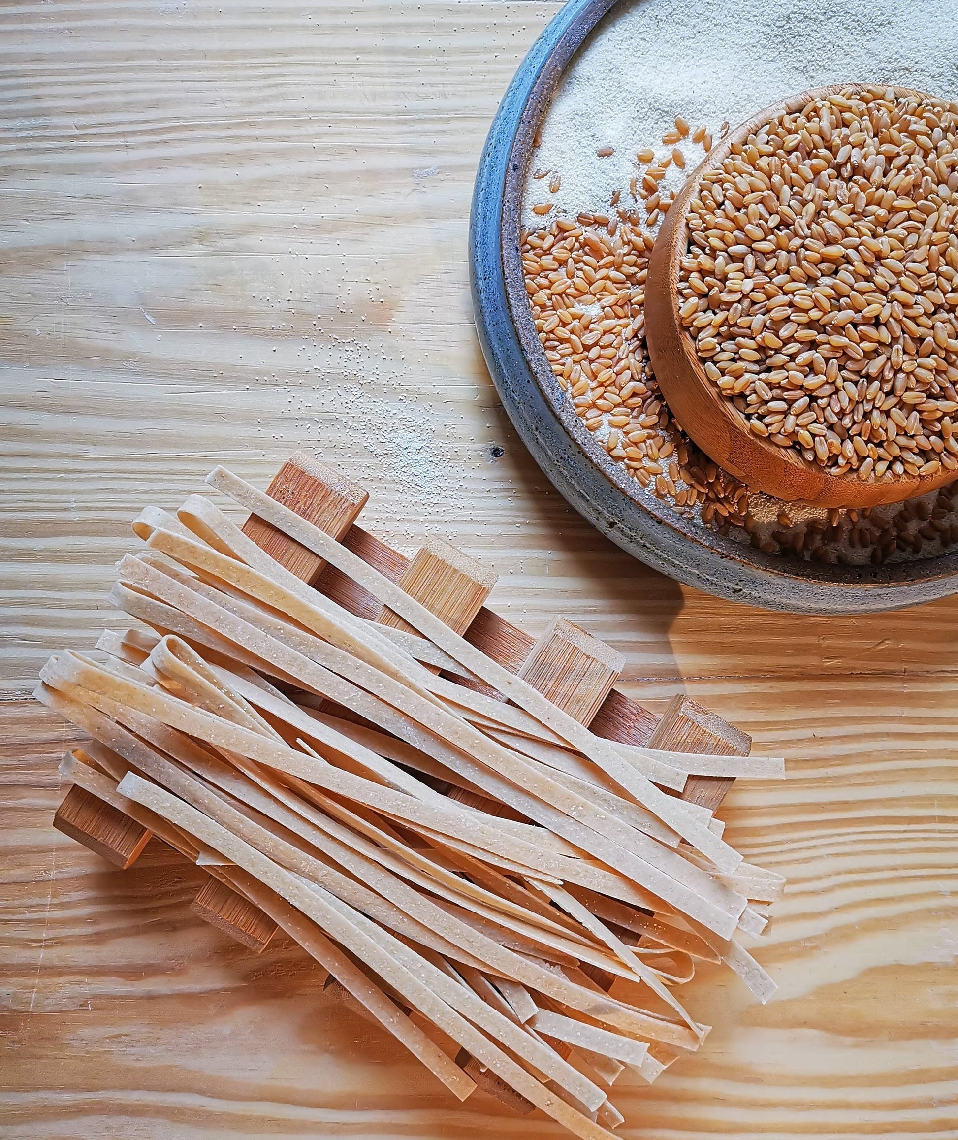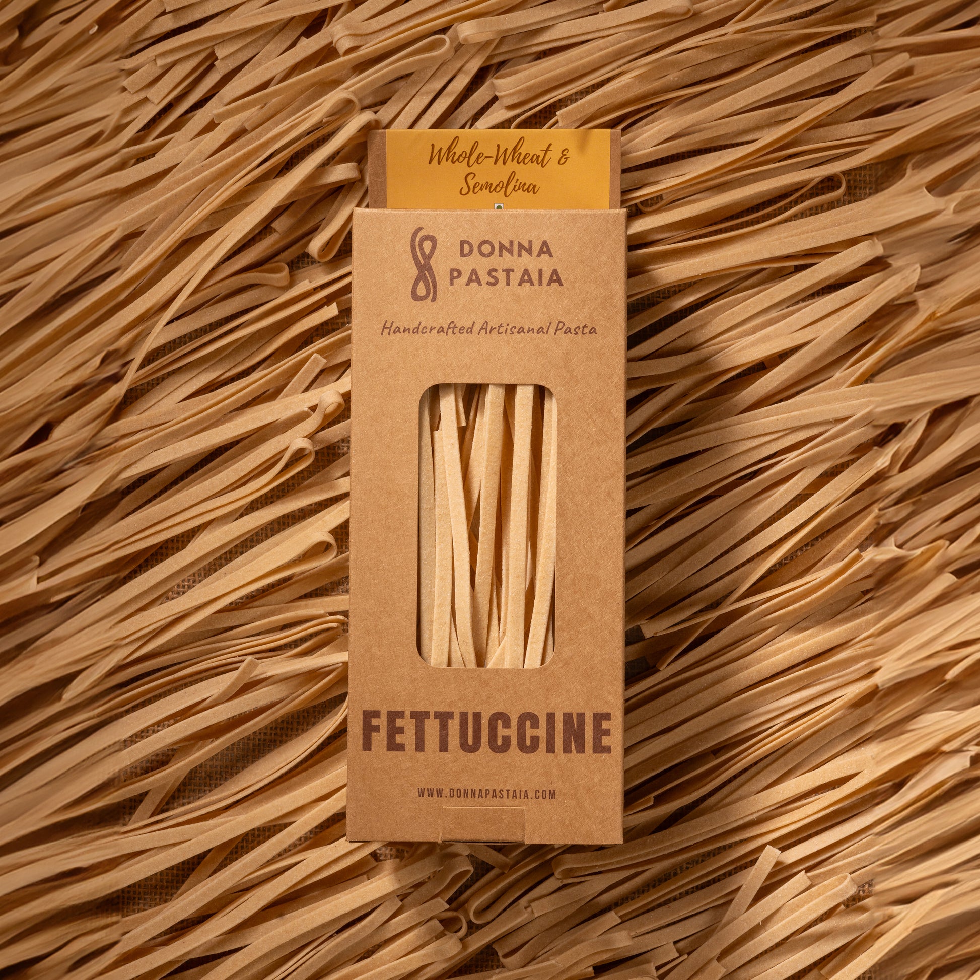 We have added a healthy twist to the traditional eggless semolina pasta by marrying it with whole wheat to give it that extra fibre and protein! For the times when you do not want to compromise on either health or taste. This very versatile pasta is made with a combination of organic whole wheat and organic semolina, rolled into ribbons and dried using time tested techniques at low temperatures to maintain the integrity and benefits of our handpicked ingredients.