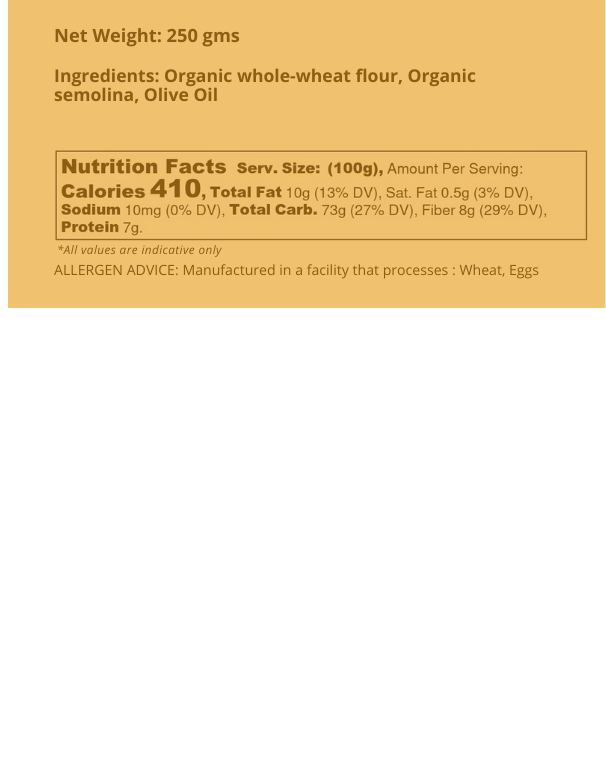 These are then dried using traditional slow drying methods at low temperatures over a long duration to retain the nutritional integrity of the beautiful ingredients. Each part of the process is done patiently, using handpicked ingredients with the right methods and tools to give you nothing but the best quality pasta.