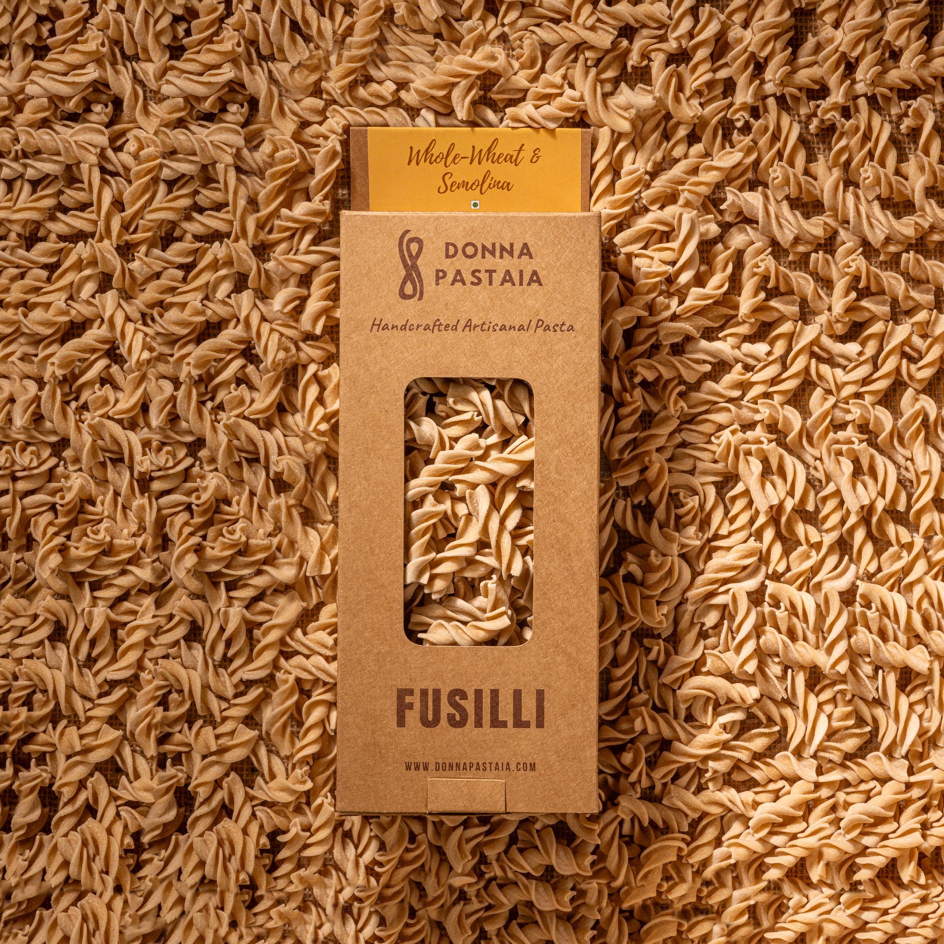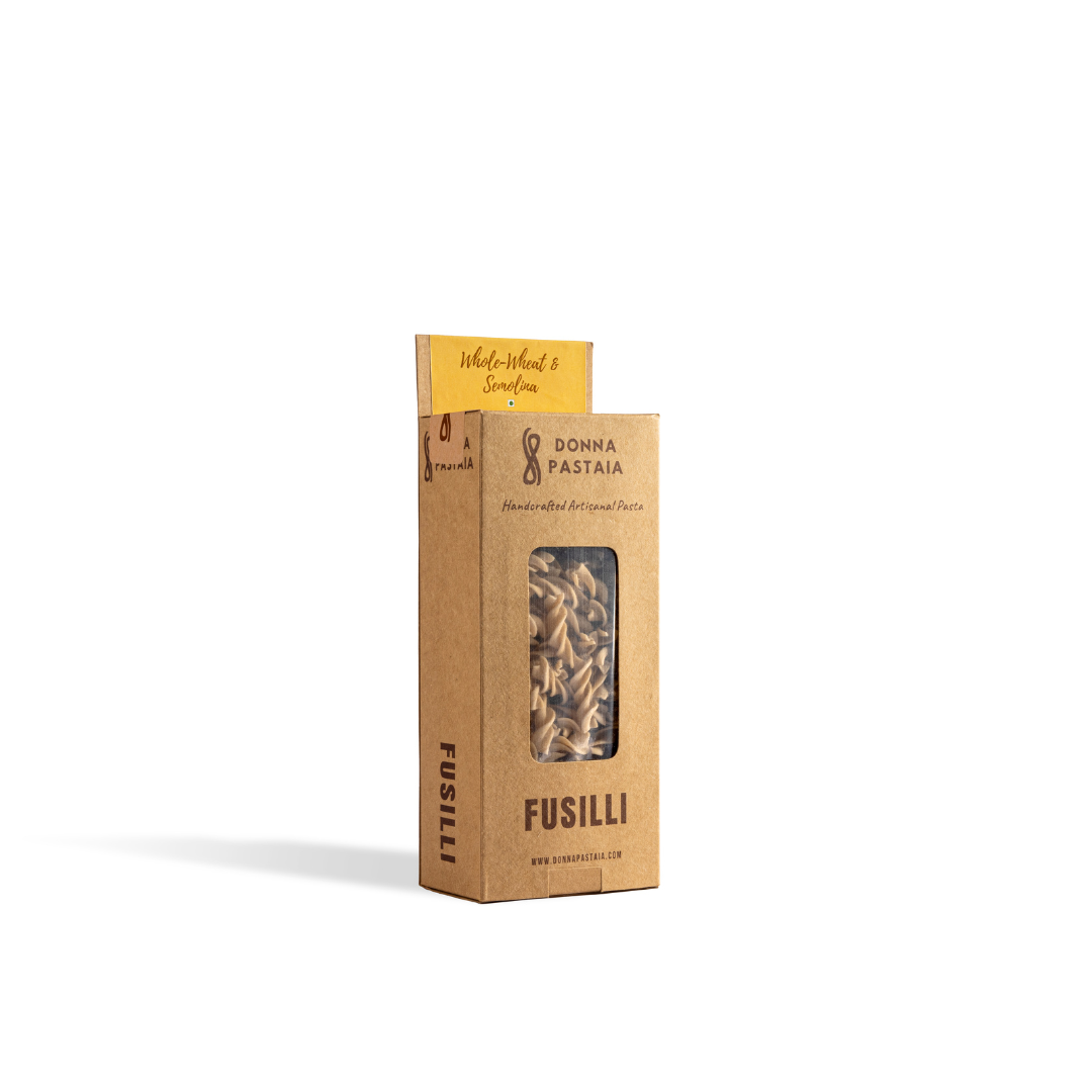 Our artisanal fusilli is made with organic whole wheat and organic semolina and extruded through high quality bronze dies. The texture and taste of bronze extruded pasta is truly unique, and considered far more superior to their commercial counterparts.